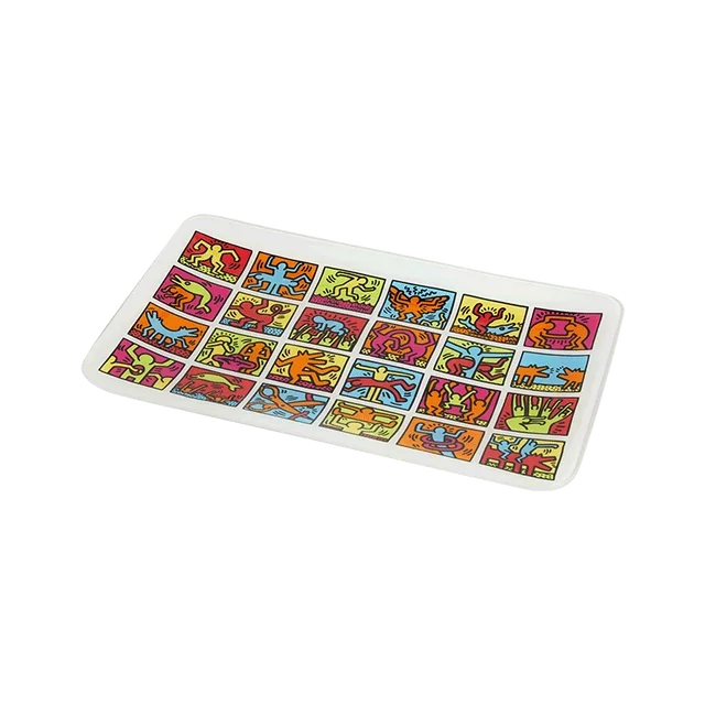 Contrasting colours and bold, shifting lines are blanketed with an exceptionally clear, ultra-white glass. The underside of the Tray is stamped with Keith Haring’s distinguished signature.